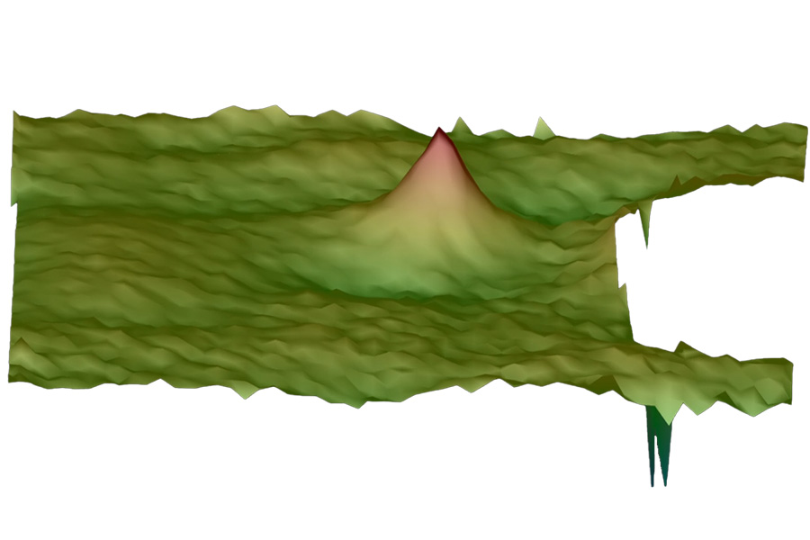 Generováním reálných 3D dat jsou každé vadě přiřazeny podrobné 3D vlastnosti, jako je průměr, plocha a výška. Tolerance jsou konfigurovány podle specifikací zákazníka a lze je rychle přizpůsobit – ideální pro Multi-peak měření vzdálenosti průhledných objektů.