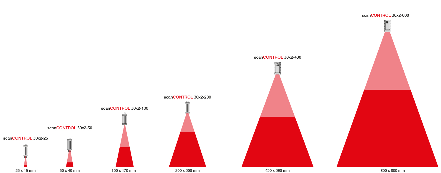 Laserové skenery scanCONTROL 30x2 jsou výkonné profilové snímače, pokud jde o velikost, přesnost a rychlost měření. Tyto laserové snímače poskytují kalibrovaná 2D profilová data s až přibližně 8 miliony bodů za sekundu. S maximální profilovou frekvencí 10 kHz jsou skenery určeny pro přesná profilová měření v dynamických procesech. Matrice snímače nabízí rozlišení 1 024 bodů s vzdáleností bodů od 24 µm. To znamená, že lze spolehlivě detekovat i malé detaily.